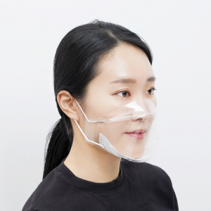 얼굴 전체가 보이는 투명마스크로서 턱하단 호흡부에 교체형 필터를 끼워 사용하는 형태로 바이러스 및 미세먼지를 완벽히 차단하고 입과 마스크 간 충분한 공간을 확보하여 편안한 숨쉬기와 화장품 등이 묻어나지 않도록 한 마스크
