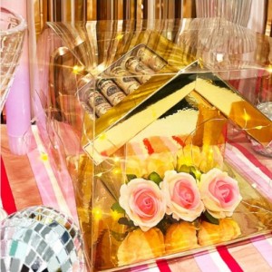 황금집에 로또나 상품권 또는 지폐를 넣어 선물하는 이벤트용돈선물. 이벤트가 끝나고도 사진이나 편지를 넣어 보관할 수 있는 상품.