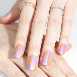 굽지 않아 간편하게 젤 네일 할 수 있는 엔프엔프(nfnf) 라벤더& 코랄 컬러의 조합의 그라데이션에 은은하게 반짝이는 홀로그램 네일