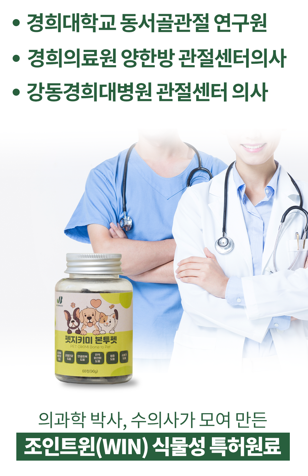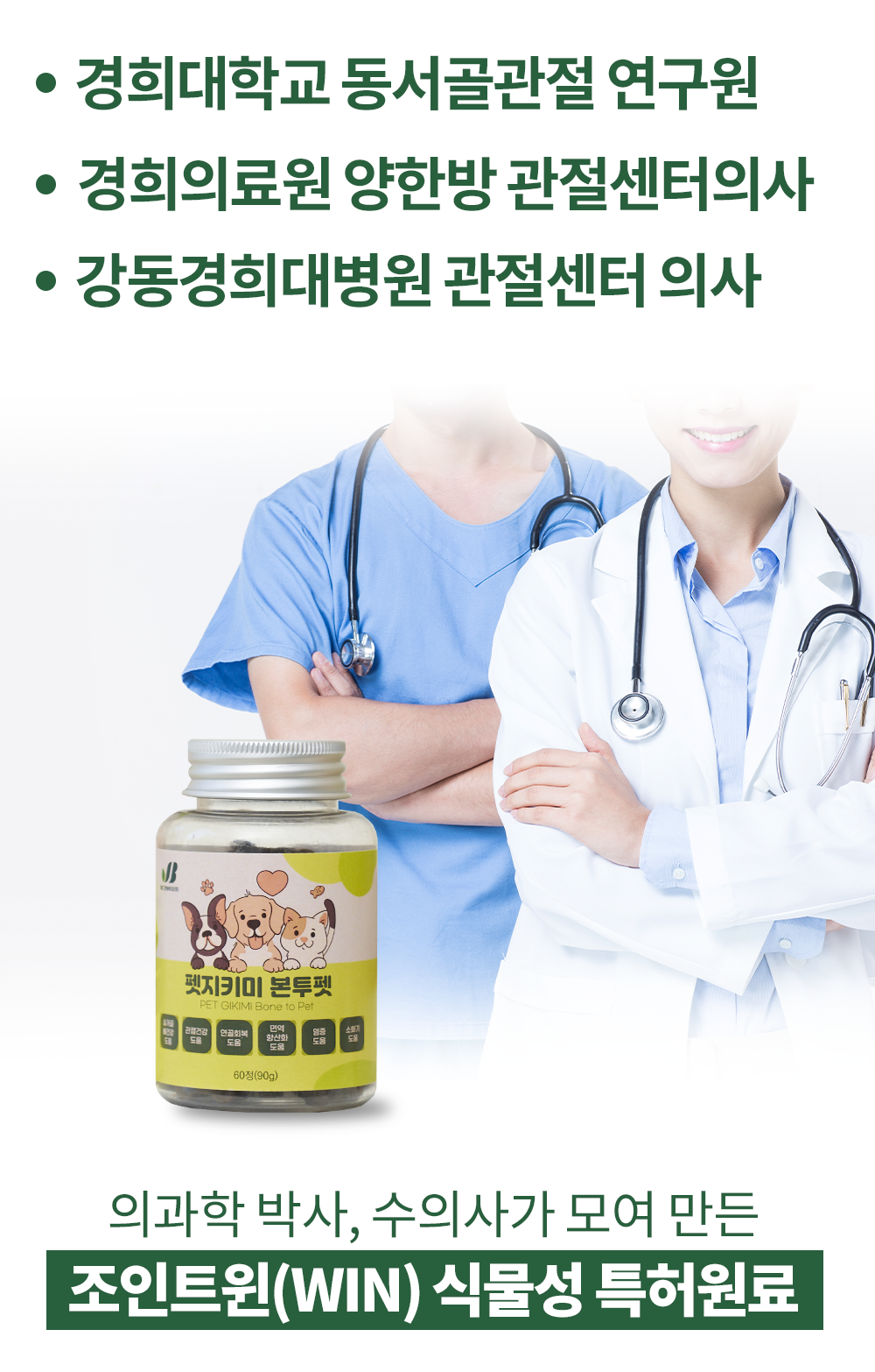 의과학 박사, 수의사가 모여 만든 펫지키미 조인트윈(WIN) 식물성 특허 원료
