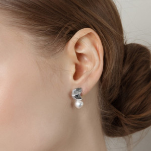 큐빅 & 진주를 양면으로 셋팅한 원터치 귀걸이