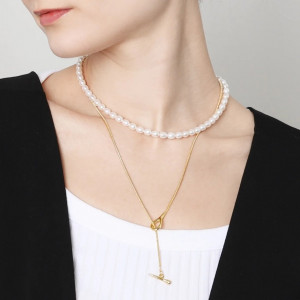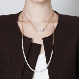 천연담수진주와 체인의 투웨이 다지인 롱 목걸이