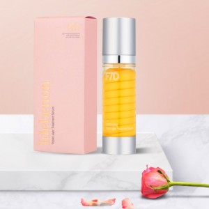 줄기세포배양액, 이데베논, 순수비타민C 세가지 엄선한 원료로 만든 세럼. 3D Dual Helix 제형으로, 내부 원료를 특정 디자인으로 형상화한 세럼. 디자이너와 연구원이 함께 작업한 세럼