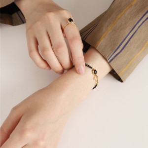 블랙스피넬 컷팅 원석에 골드컷팅볼이 포인트인 팔찌