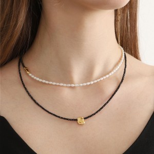 천연담수진주와 블랙스피넬 컷팅 원석 한데 어우러진 롱목걸이