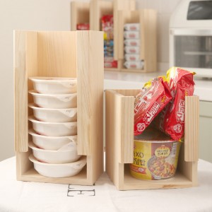 라면을 편하게 수납하고 뽑아 사용할수 있는 보기에도 예쁜 원목 선반 입니다.